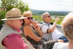 Im Anschluß durften wir auf der Dachterasse der Vinothek eine kleine Weinprobe „3 + 1“ inkl. Stehimbiss „Weck, Worscht & Wein“ genießen. Dabei schweiften unsere Blicke in das wundervolle Panorama des Rheintals bis hinüber zum Niederwalddenkmal und runter nach Bingen.